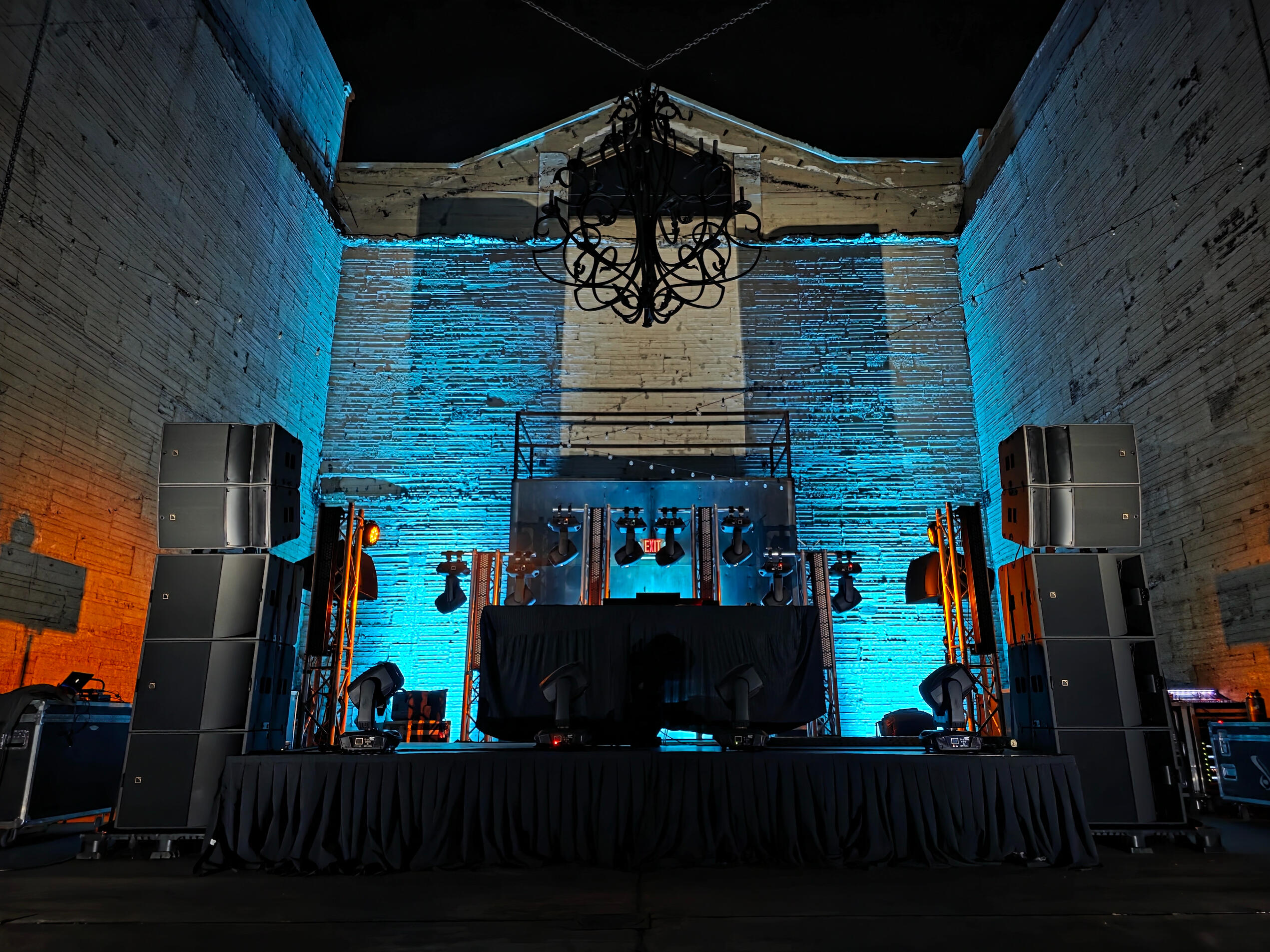 Our PA systems can be scaled up or down according to layout and size required.L Acoustics speakers can be hung up high on rigging, safely locked together in a ground stack or even pole mounted in pairs of two for smaller more intimate events.